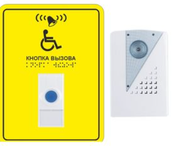 Комплект вызова ДС №13, беспроводной. Кнопка+приемник+табличка тактильная. Кнопка влагозащ. IP44