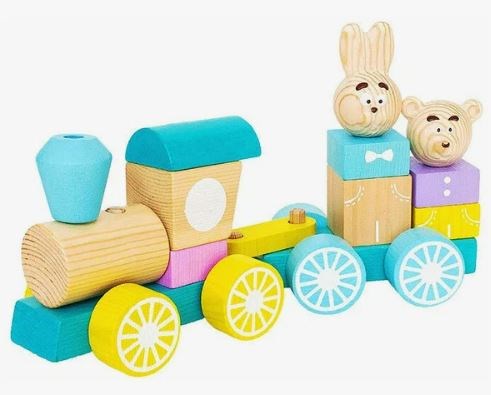 • В комплекте верёвочка, держась за которую малыш сможет катать зверюшек на собственном паровозике.