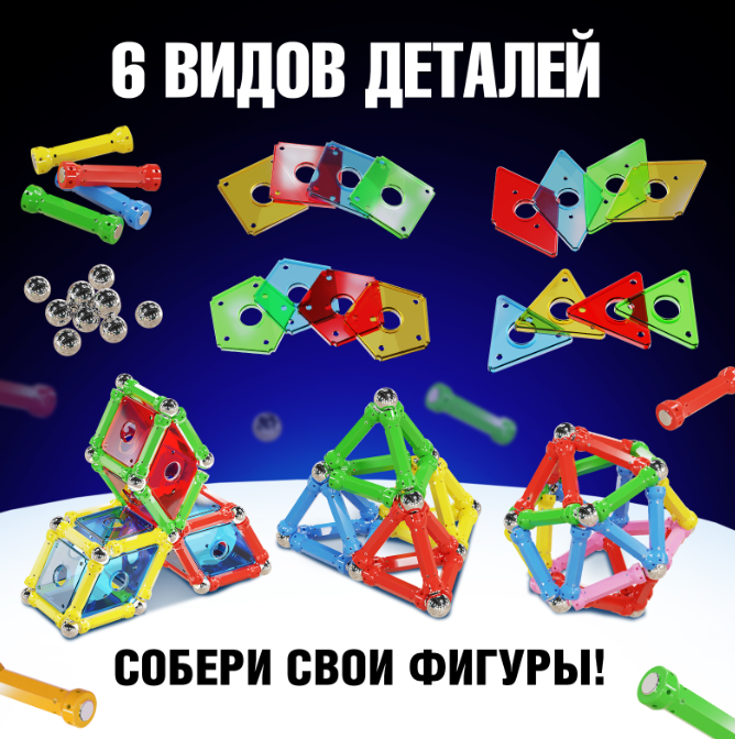 Конструктор магнитный «Необычные фигуры» 115 деталей
