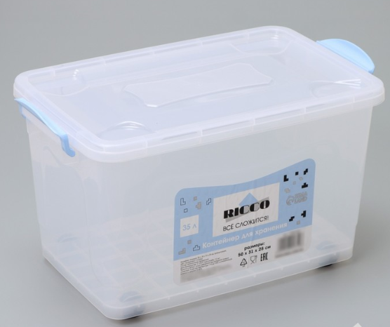 Контейнер для хранения с крышкой RICCO, 35 л, 50×31×28 см, на колёсах, прозрачный