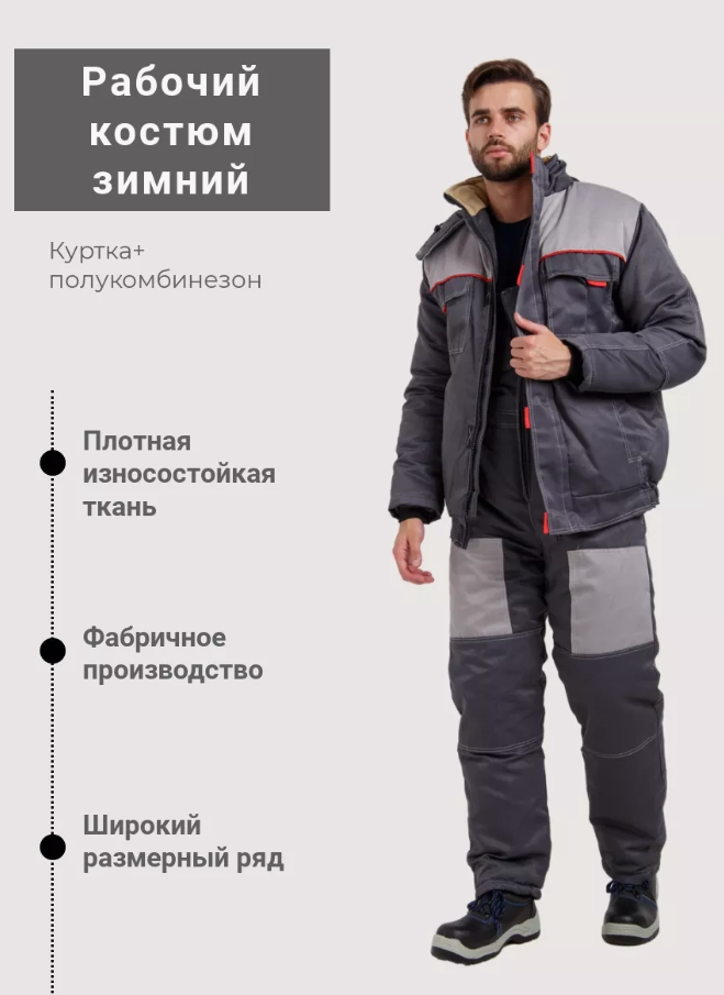 Комплектация: куртка рабочая зимняя; полукомбинезон рабочий зимний