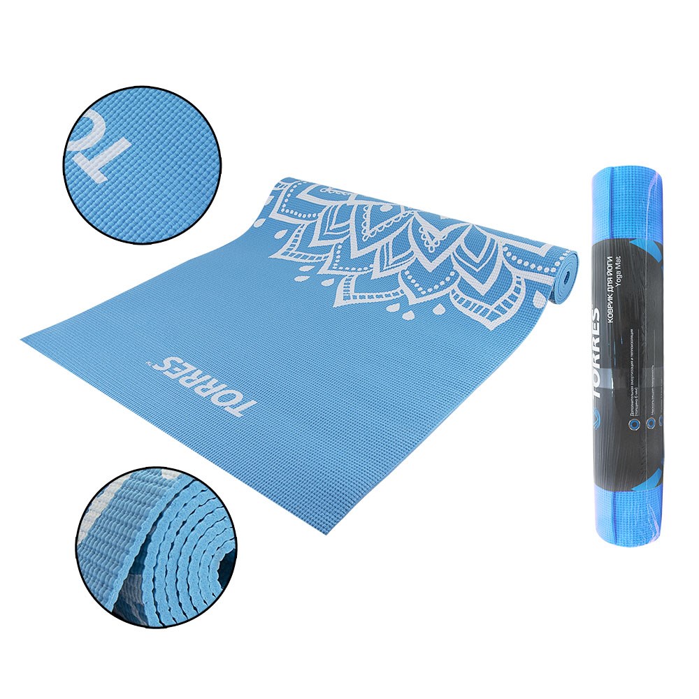 Коврик для йоги TORRES Basis 4, ПВХ 4 мм, голубой
