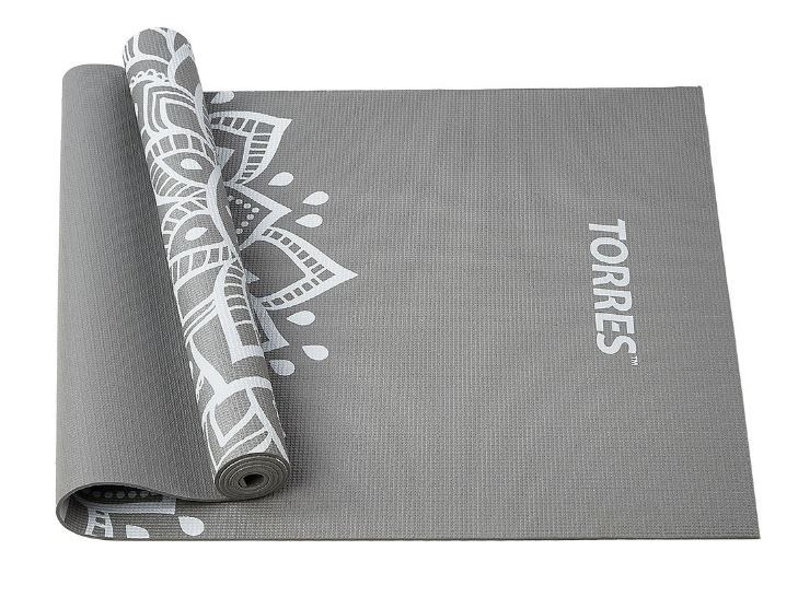 Коврик для йоги TORRES Relax 4, PVC 4 мм, нескользящее покрытие, серый