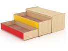 ЛДСП 16 мм, на спинках противоударный врезной кант 2 мм, на остальных деталях кромка 0,4 мм. Задние бортики кроватей выступают, что при выдвижении позволяет кроватям цепляться друг за друга. Нижние части опор(боковин) кроватей оборудованы колесными опорами.
