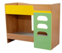 ЛДСП толщиной 16 мм, на спинках, бортике и лесенке противоударный врезной кант 2 мм, на остальных деталях кромка 0,4 мм. Спинки закруглены радиус 50 мм, имеют пластиковые подпятники.
