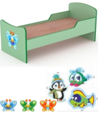 ЛДСП толщиной 16 мм, на спинках и бортиках кровати противоударный врезной кант 2 мм. Спинки фигурные, имеют пластиковые подпятники. Рисунок - УФ-печать на выбор.