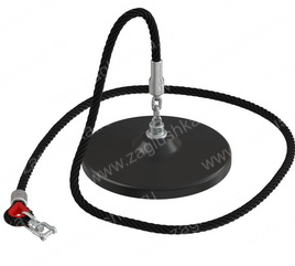 Сиденье выполнено из резины, подвес - из армированного каната. На конце каната установлен металлический вертлюг. который фиксируется на пластиковый коуш и обжимается алюминиевой гильзой. Применяется как качель тарзанка на детских игровых или спортивных площадках.