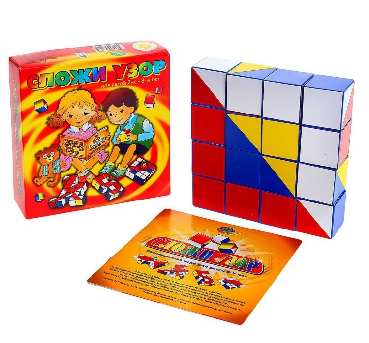 Автор методики – известный педагог-новатор Б.П. Никитин. Большинство его игр – это всевозможные кубики, занимаясь с которыми дети развивают логическое мышление и творческие способности. Кубики «Сложи узор» на протяжении многих лет вызывают живой интерес у детей и взрослых, заставляют подумать над задачкой и порадоваться полученному результату.
