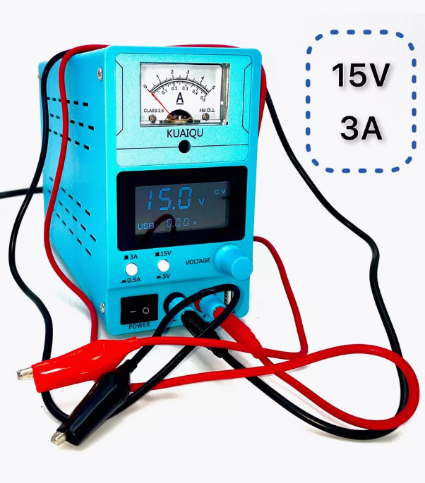 Компактный и практичный лабораторный источник питания 0-15В 0-3А KUAQIU можно купить для оснащения профессиональных лабораторий и домашних мастерских, где важна точность и надежность электропитания.