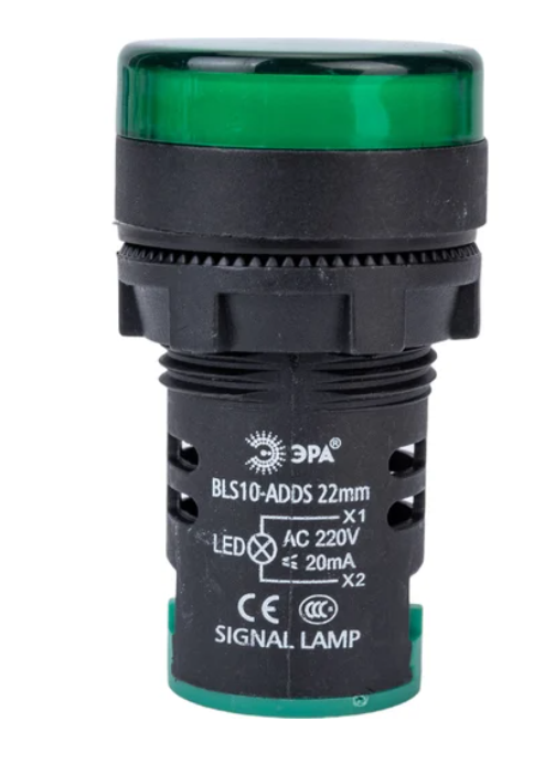 Лампа ЭРА AD22DS(LED)матрица d22мм, зеленый, 230В