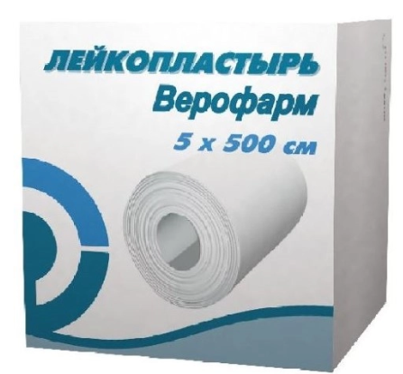 Лейкопластырь Верофарм 5×500 см в картонной упаковке — прочный и воздухопроницаемый пластырь для фиксации повязок и медицинских устройств