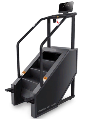Показания консоли: время тренировки, скорость, условная высота подъема по лестнице вверх/пройденная дистанция, калории, пульс, шаги