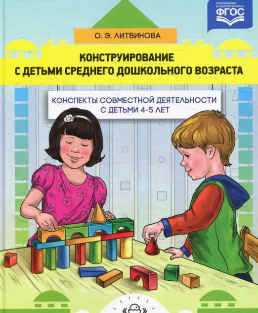 Литвинова О. Э. Конструирование с детьми среднего дошкольного возраста. Конспекты совместной деятельности с детьми 4-5 лет – СПб., ДЕТСТВО-ПРЕСС, 2022.