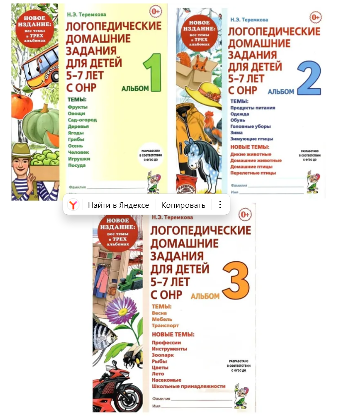 Логопедические домашние задания для детей 5-7 лет с ОНР. Комплект из 3-х пособий Альбом 1,2,3. Теремкова Наталья Эрнестовна | Теремкова Наталья Эрнестовна