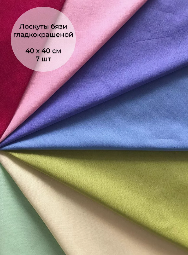 Набор из 7 различных лоскутов, выполненных из 100% хлопка, станет отличным выбором для школьного использования в кабинетах технологии или для творчества дома. Каждый лоскут имеет размер 40 х 40 см (±1 см) и отличается плотностью 120 г/м². Такой комплект идеально подходит для различных поделок, шитья одежды для кукол, а также для создания деталей в технике пэчворк (лоскутного шитья).