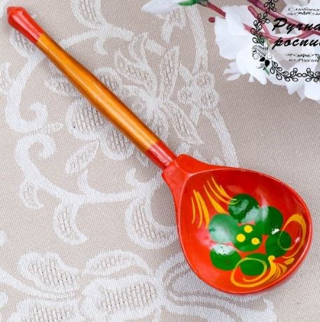Ложка деревянная "Краснушка", полубасок, красный фон