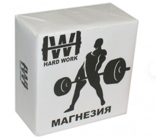 Универсальная магнезия предназначена для подсушивания рук. Применяется в тяжёлой атлетике, скалолазания, спортивной гимнастики и других видах спорта. Состав: вода - 1,20 %, соляная кислота - 0,16 %, окись кальция - 1,00 %, окись магния - 39,00 %. Молекулярная формула 4MGCO3(OH)24H2O.