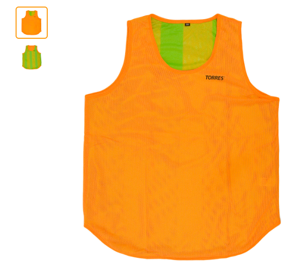 Двухсторонняя манишка ярко-оранжевого цвета с одной стороны и зеленого с другой. Двухслойная конструкция служит для удобства использования в тренировках и играх, в любой момент можно сменить окраску, просто вывернув манишку наизнанку. Такой экономичный вариант 2 в 1 пользуется спросом у широкого круга игроков и тренеров.