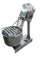 Норма загрузки 30-60 кг. Продолжительность замеса 20-30 мин. Дежа не имеет отдельного привода, а получает вращение от рабочего органа давлением теста на боковую стенку, притормаживание дежи достигается через педаль тормоза. В комплект входит: основание, приводной механизм, месильный орган, дежа, подкатная тележка для снятия и перевозки дежи.