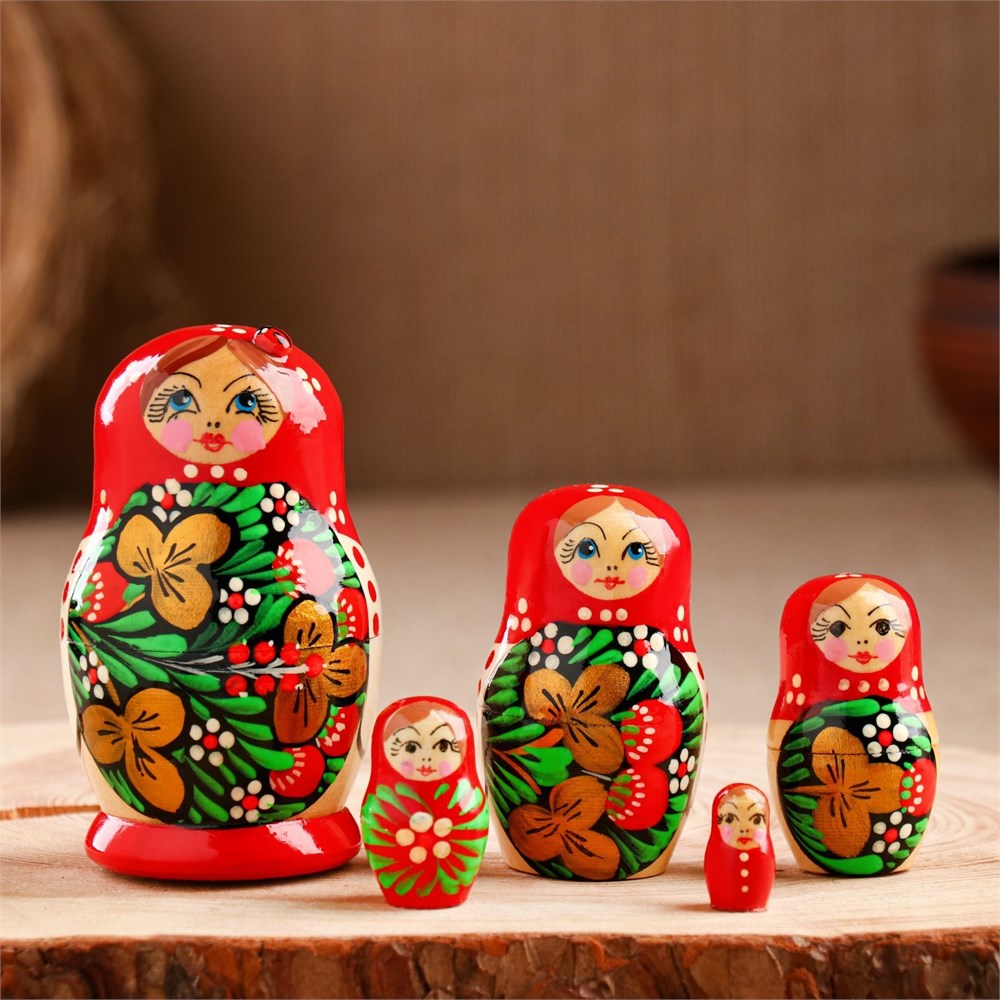 Матрёшка «Божья коровка», красный платок, 5 кукольная, 9-11 см
