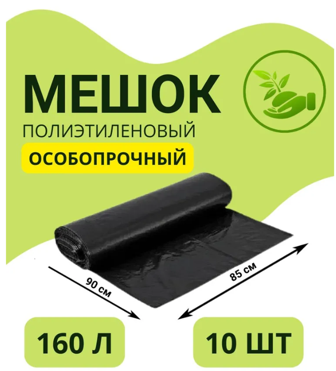 Мешки для мусора 160 л, 50мкм, 10 шт