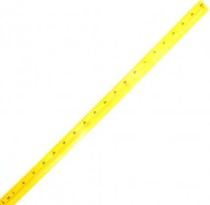 Линейка представляет собой деревянный брусок прямоугольного сечения длиной 1000 мм, шириной 45 мм и толщиной 9 мм, окрашенный в белый цвет.