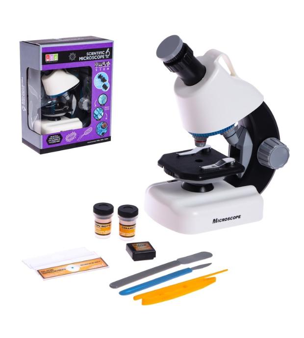 Микроскоп детский «Юный ученый» кратность х100, х400, х1200, подсветка, цвет белый