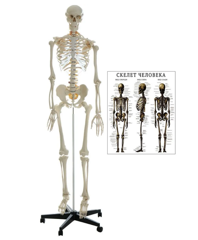 Модель человеческого скелета в натуральную величину 176 см. Анатомическая кость с держателем