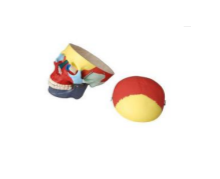 Высота около 15 см, изготовлена из пластмассы. Модель позволяет продемонстрировать расположение костей черепа. Отдельные кости черепа выделены различными цветами, что позволяет четко различать их границы.