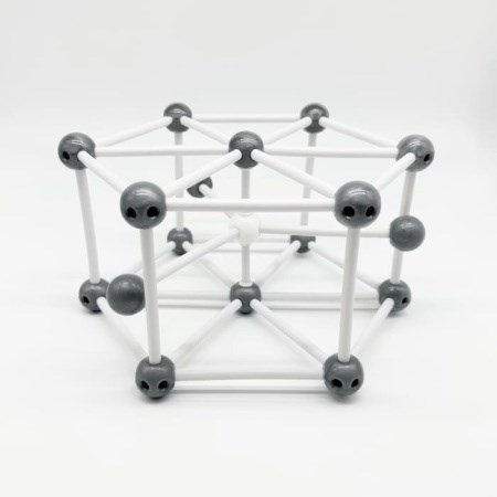 Модель позволяет демонстрировать гексагональную кристаллическую решетку металлов с координационным числом атома 12. Такая решетка присуща магнию, титану, кобальту.