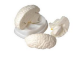 Модель является разборной, изображает внешнее строение головного мозга человека и его сагиттальный разрез. На модели выделены желтым цветом нервные пучки.