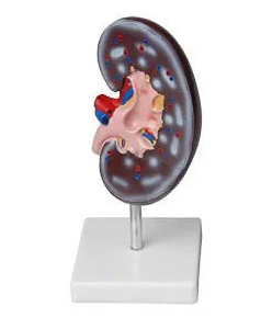 Модель изображает внешнее строение почки человека и ее сагиттальный разрез. Модель окрашена в естественные цвета.