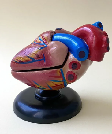 Модель высотой не менее 13 см, изготовлена из пластмассы, раскрашена и установлена на подставке. Модель является разборной, что позволяет рассмотреть следующие особенности строения органа: - предсердия (левое и правое); - желудочки (левый и правый); - трехстворчатый клапан; - двухстворчатый клапан; - полулунные клапаны.