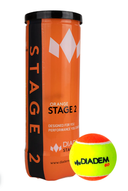Мячи для большого тенниса детские DIADEM Stage 2 Orange Ball, BALL-CASE-OR, 8-10 лет, упаковка 3 мяча