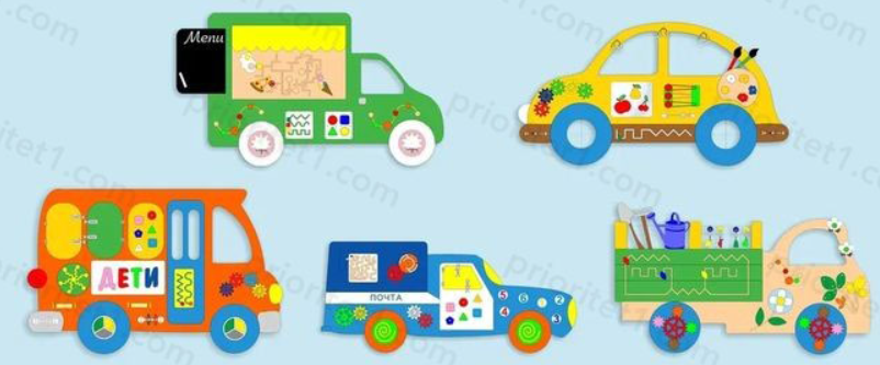 Размеры в собранном виде (Д х Ш х В), см: «Фургон повара» - 74,8х130х3; «Машина почтальона» - 56,6х130; «Школьный автобус» - 84,2х130; «Автомобиль художника» - 69х130; «Грузовичок садовника» - 77,5х130