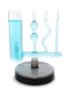 Прибор предназначен для демонстрации одинакового уровня однородной жидкости в сообщающихся между собой сосудах разной формы и применяется в следующих демонстрациях: закон сообщающихся сосудов, заполненных однородной жидкостью; неизменность уровня жидкости при наклоне сообщающихся сосудов