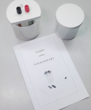 Комплектность: пластмассовые сосуды – 2 шт., крышка с двумя универсальными зажимами и индикатором – 1 шт., крышка сосуда – 1 шт., электроды из графита – 2 шт., электроды свинцовые – 2 шт., электрод цинковый (оцинкованное железо) – 2 шт., электрод медный – 2 шт.