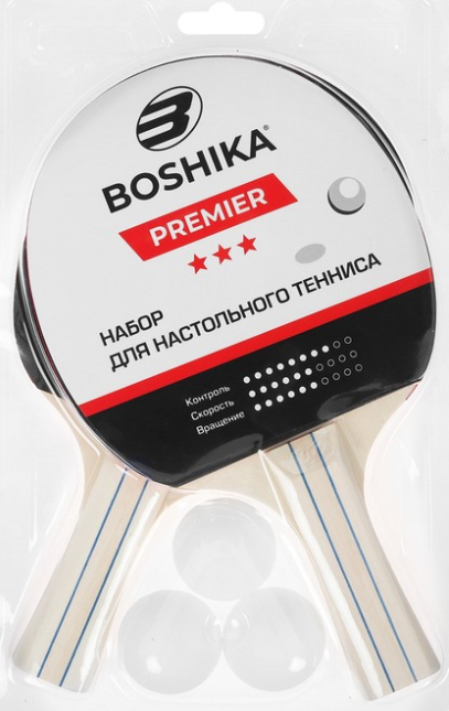 Набор для настольного тенниса BOSHIKA Premier: 2 ракетки, 3 мяча, 3 звезды