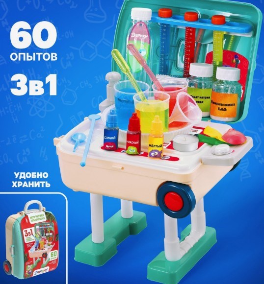 Набор для опытов «Моя первая лаборатория», стол 3в1, 60 опытов