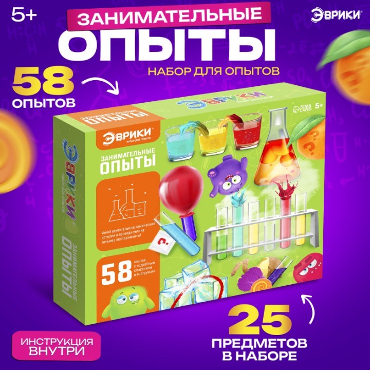 Набор для опытов «Занимательные опыты», 58 опытов, 25 предметов