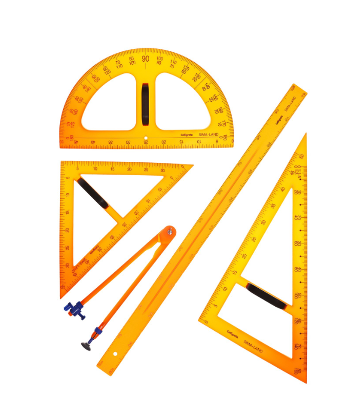 Набор для школьной доски, 5 предметов: 2 треугольника, 1 транспортир, 1 циркуль, 1 линейка