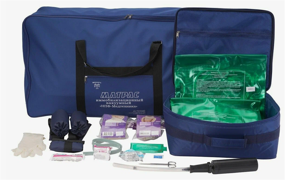 В наборе представлены пневматические шины КШв-2 и КШд-2, которые подходят как для взрослых, так и для детей. Эти шины обеспечивают надежную и комфортную фиксацию конечностей благодаря возможности регулировки давления с помощью насоса, что позволяет адаптировать их под различные анатомические особенности пострадавших.