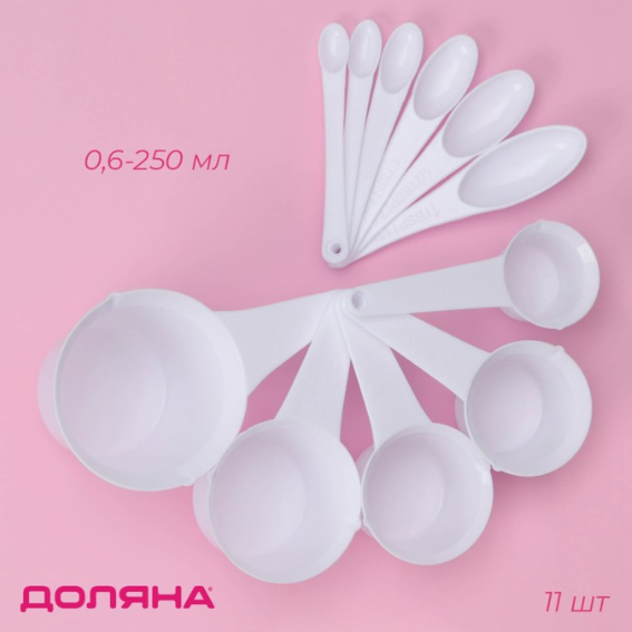 Набор мерных ложек Доляна, 11 шт: 30/60/80/125/250 мл, 0,6/1,2/2,5/5/7,5/15 мл, цвет белый
