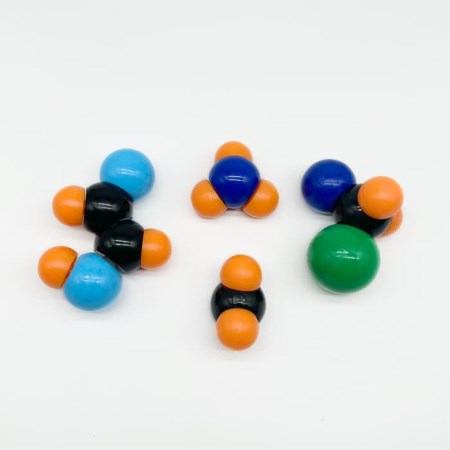 Набор позволяет моделировать молекулы метана и прочих предельных углеводородов, дихлорэтана, дихлорэтилена, этилена и его хлорпроизводных, бензола, метилбензола и фенола, этилового спирта, ацетона, уксусной и аминоуксусной кислот, ацетальдегида, анилина, нитробензола, сероводорода, воды, углекислого газа. Конфигурация отверстий в шарах обозначает вид связи атомов в соединениях (одинарную, двойную или тройную).