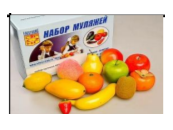 Состав набора (муляжи): 1. Яблоко зеленое. 2. Яблоко красное. 3. Киви. 4. Гранат. 5. Персик. 6. Лимон. 7. Груша. 8. Апельсин. 9. Манго. 10. Хурма. 11. Банан. 12. Клубника.