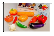Состав набора (муляжи): 1. Баклажан. 2. Перец стручковый. 3. Кукуруза. 4. Морковь. 5. Огурец. 6. Перец болгарский. 7. Помидор. 8. Тыква круглая. 9. Чеснок. 10. Картофель.