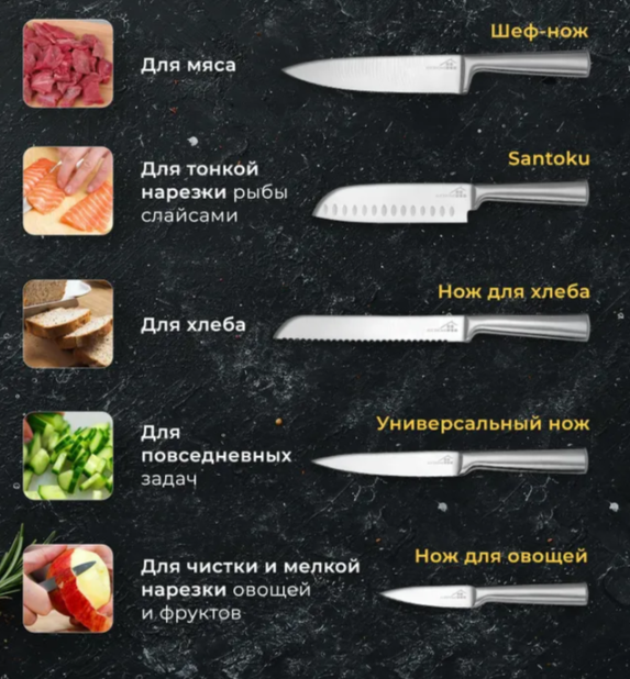 Назначение: Сантоку, для мяса, для овощей, для перца, для рыбы, для стейка, для сыра, для томатов, для удаления сердцевины, для фруктов, для хлеба, для цукини и кабачка, для чеснока, для шаурмы, для яблок, поварской, разделочный, универсальный, филейный, для зелени, для креветок, для масла