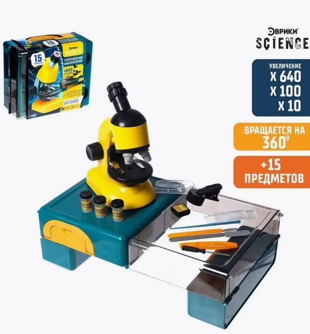 Набор Переносная лаборатория, микроскоп и 15 предметов