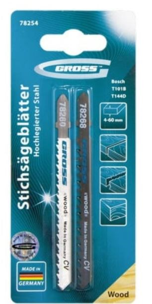 Набор полотен для электролобзика GROSS, состоящий из двух высококачественных пилок (T101B, T144D), специально разработанных для чистой и быстрой обработки древесины. Этот набор станет незаменимым инструментом для профессионалов и любителей, работающих с деревом.