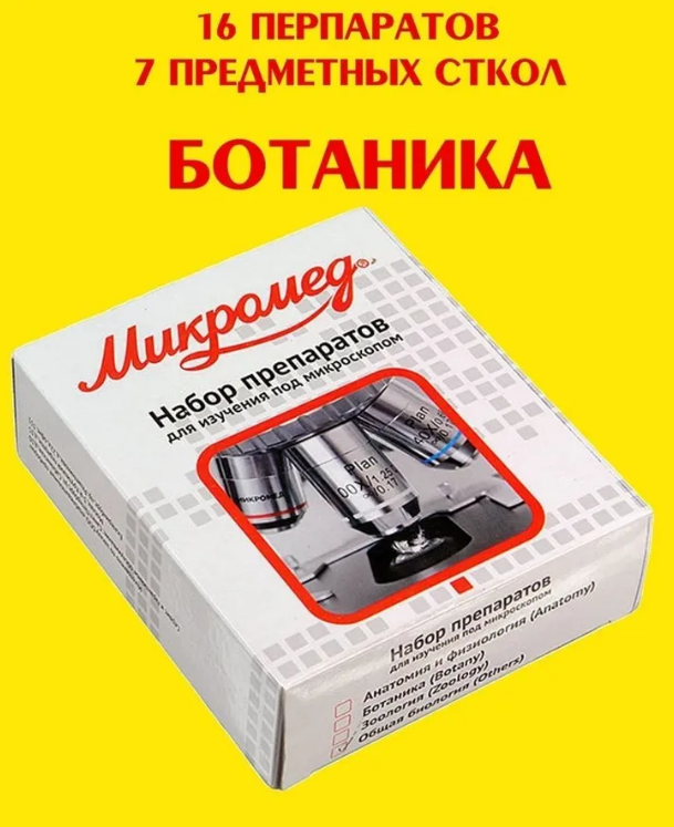 Набор препаратов Микромед для микроскопа БОТАНИКА, 16 образцов, предметные стекла